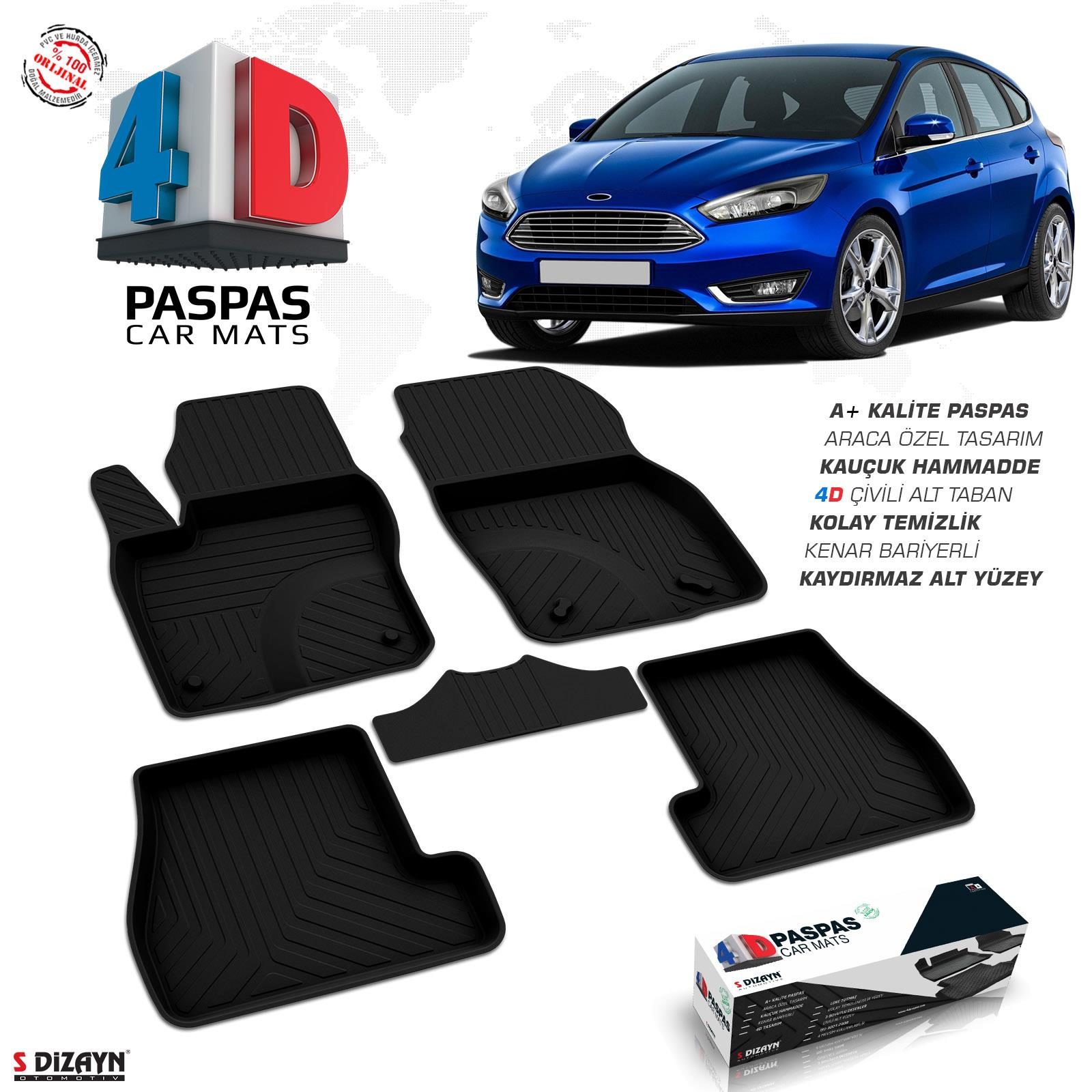 S-Dizayn Ford Focus 3 Makyajlı HB 4D Havuzlu Paspas 2015-2018 A+Kalite