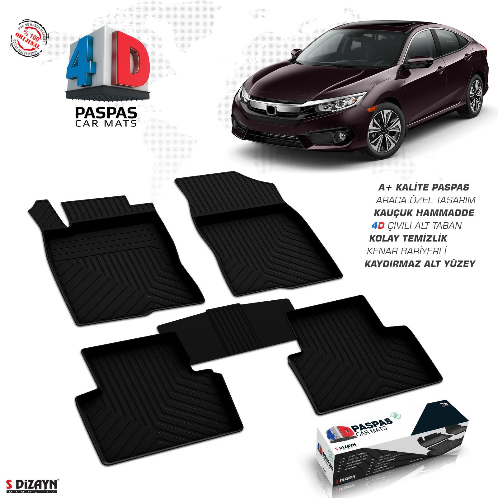 S-Dizayn Honda Civic SD 4D Havuzlu Paspas 2016-2021 A+ Kalite