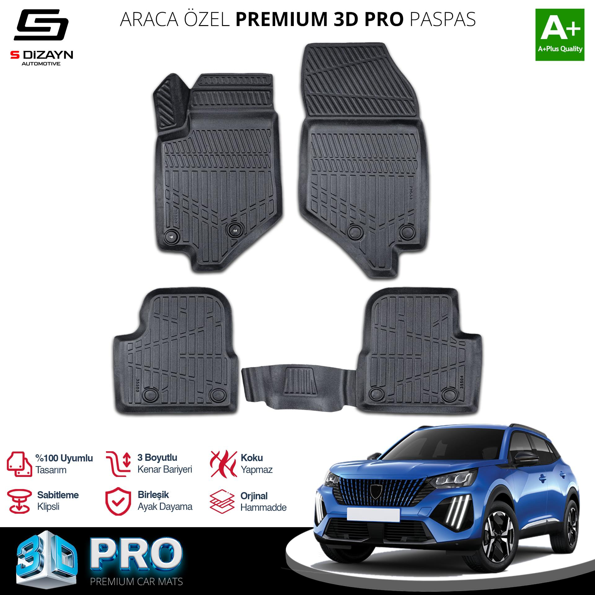 S-Dizayn Peugeot 2008 Elektrikli 3D Pro Havuzlu Paspas 2022 Üzeri A+ Kalite