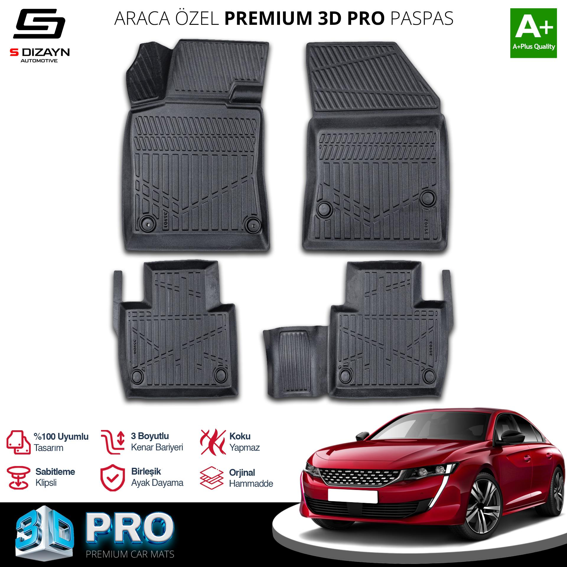 S-Dizayn Peugeot 508 3D Pro Havuzlu Paspas 2018 Üzeri A+ Kalite