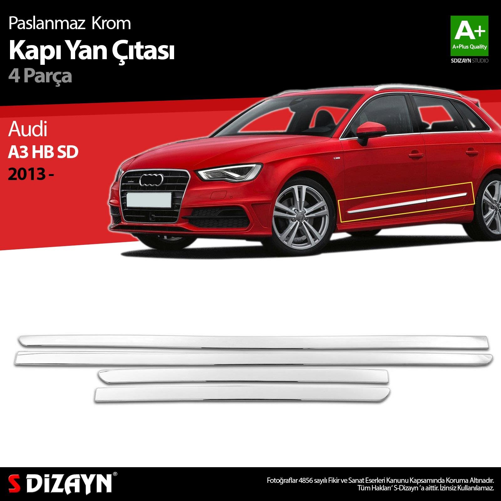 S-Dizayn Audi A3 HB SD Krom Kapı Yan Çıtası 2013-2017