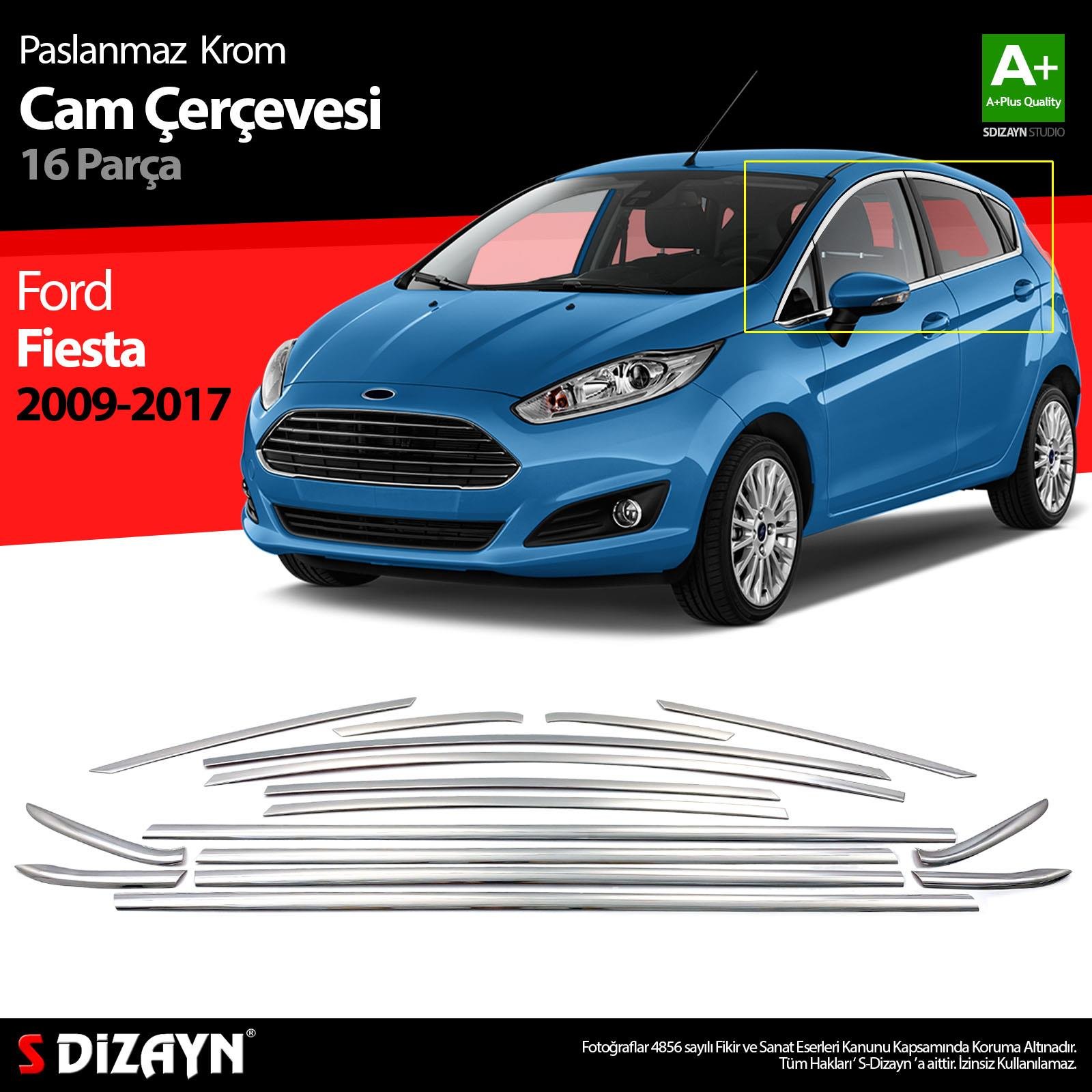 S-Dizayn Ford Fiesta Krom Cam Çerçevesi 16 Parça 2009-2017 A+ Kalite