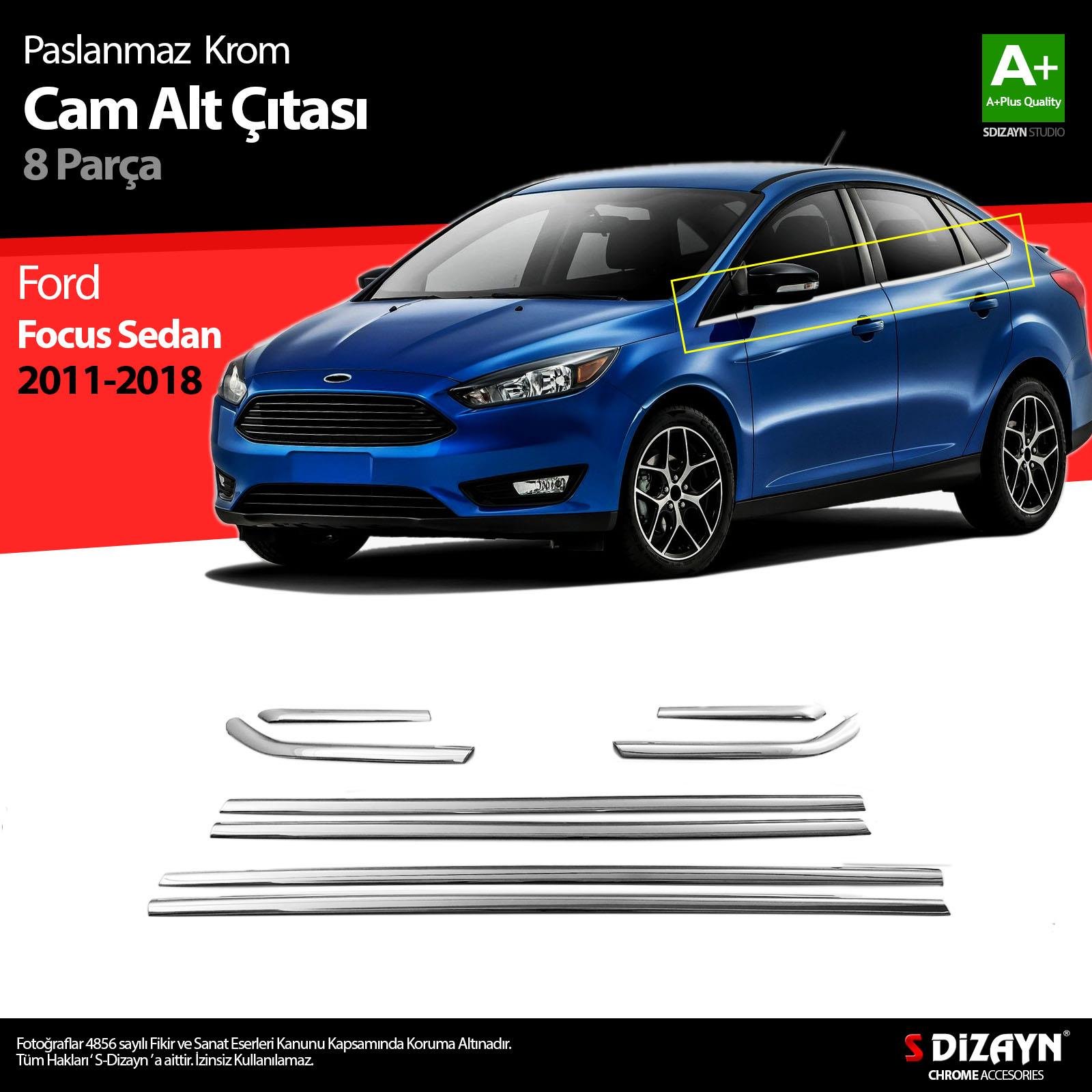 S-Dizayn Ford Focus 3 SD Krom Cam Çıtası 8 Prç 2011-2018