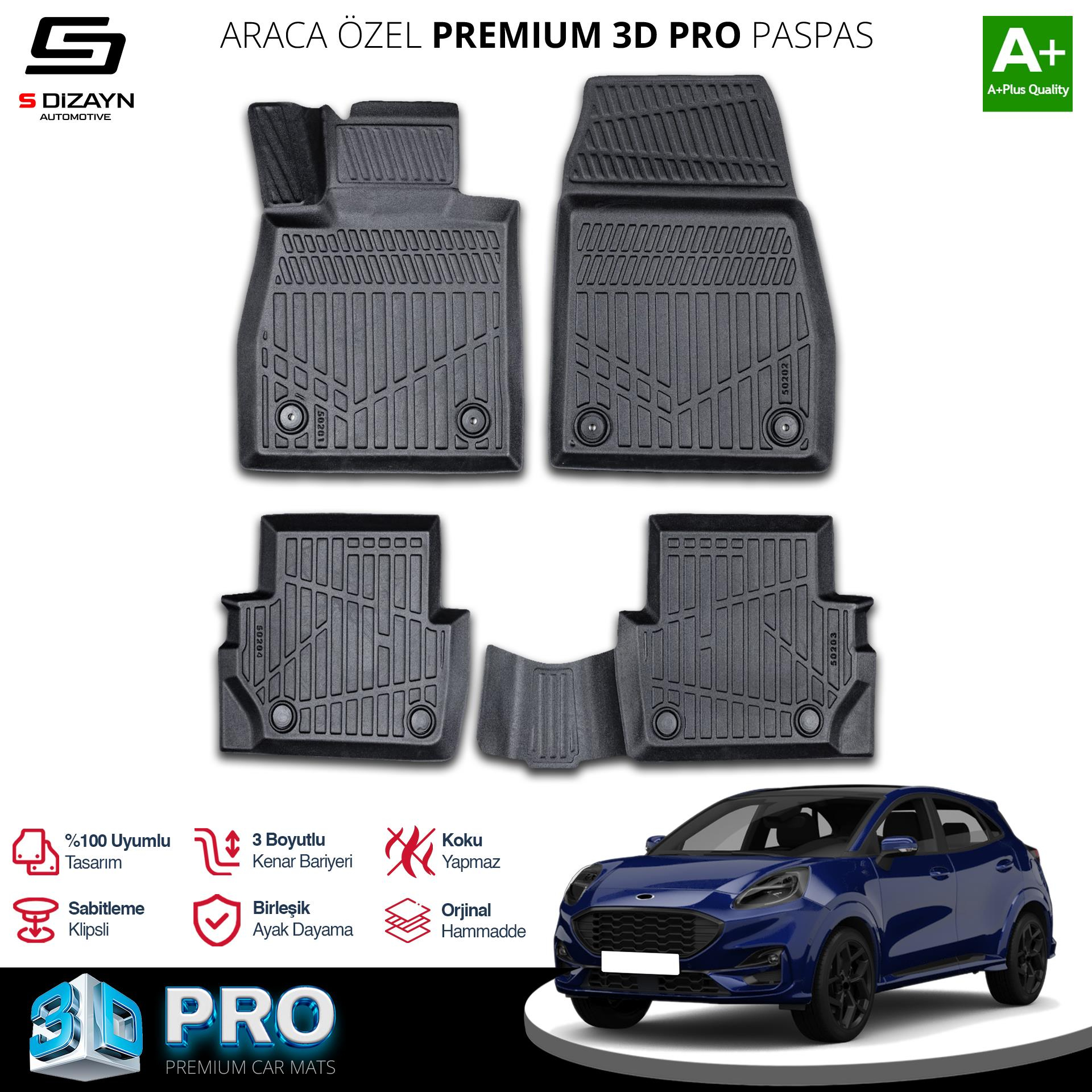 S-Dizayn Ford Puma 3D Pro Havuzlu Paspas 2019 Üzeri A+ Kalite