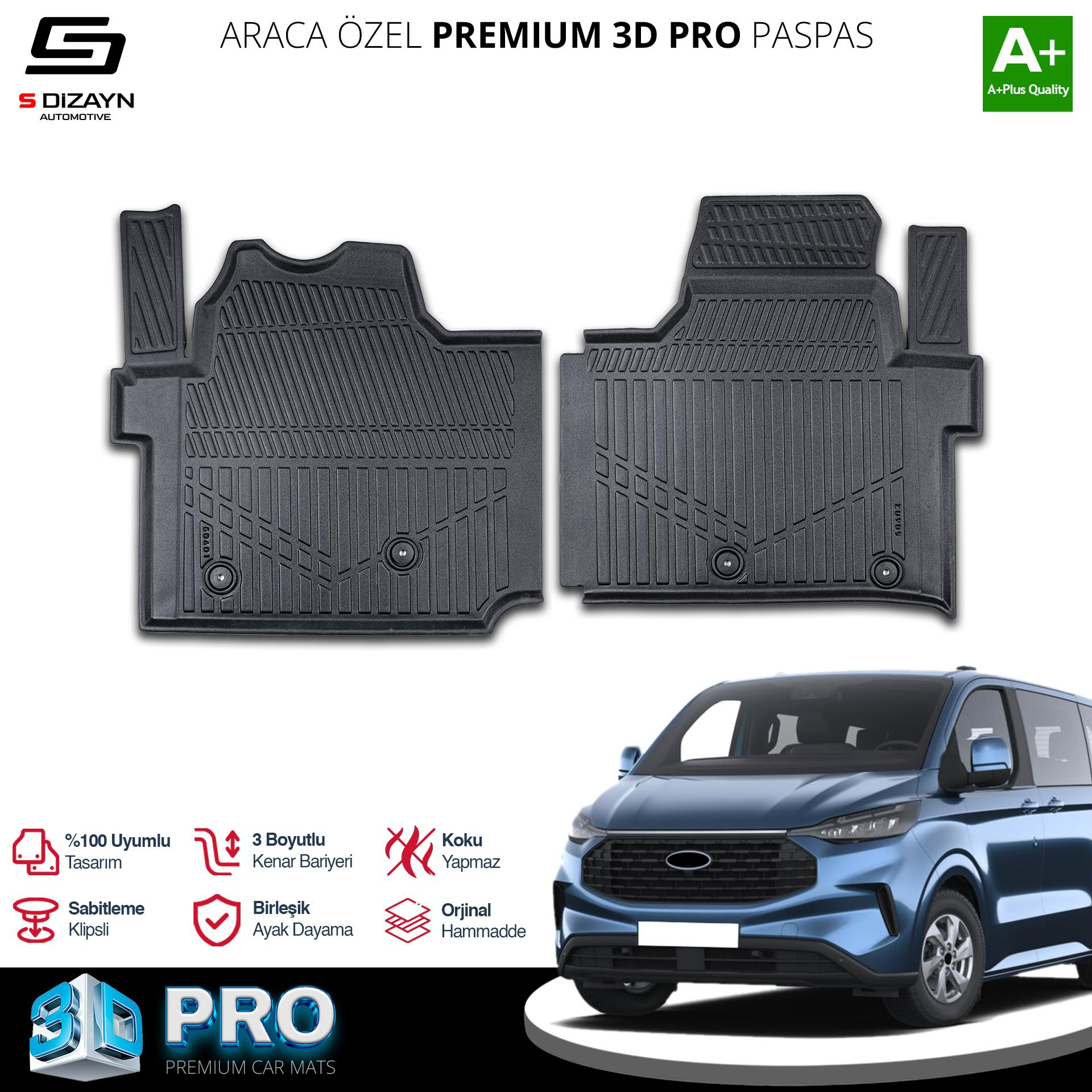 S-Dizayn Ford Tourneo Custom 3D Pro Havuzlu Paspas 2024 Üzeri A+ Kalite