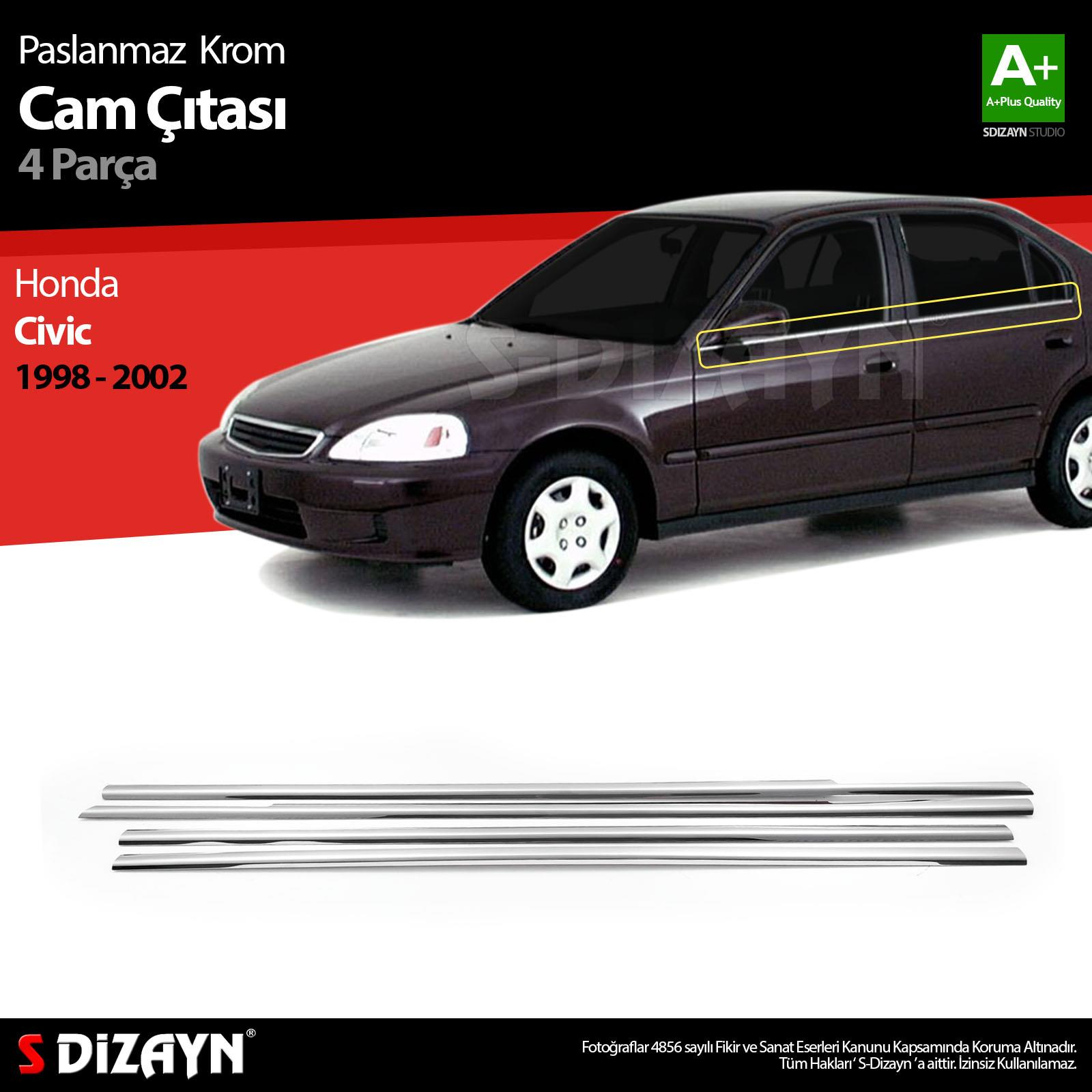 S-Dizayn Honda Civic Krom Cam Çıtası 4 Prç 1998-2002