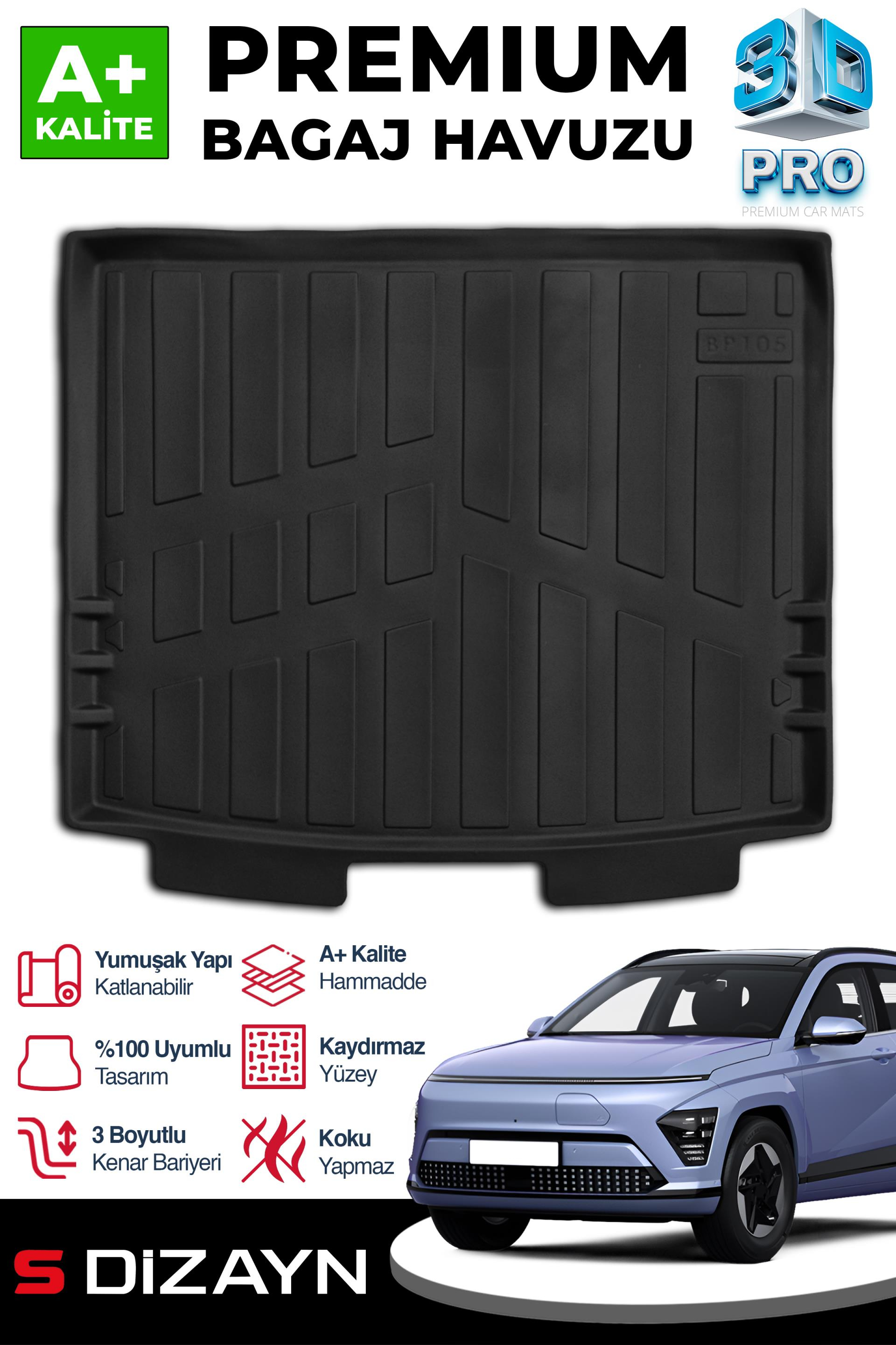 S-Dizayn Hyundai Kona Elektrikli 3D Pro Bagaj Havuzu 2024 Üzeri A+ Kalite