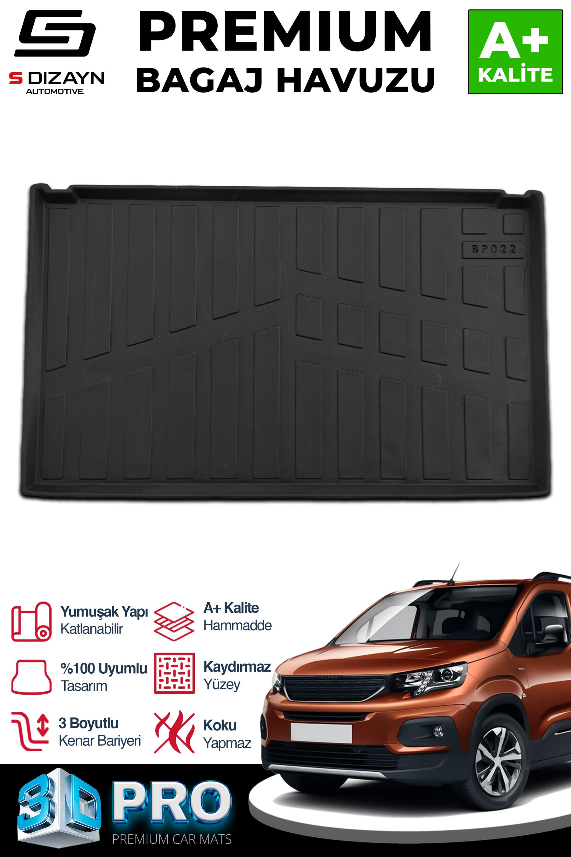 S-Dizayn Peugeot Rifter Seperatörlü 3D Pro Bagaj Havuzu 2019 Üzeri A+ Kalite