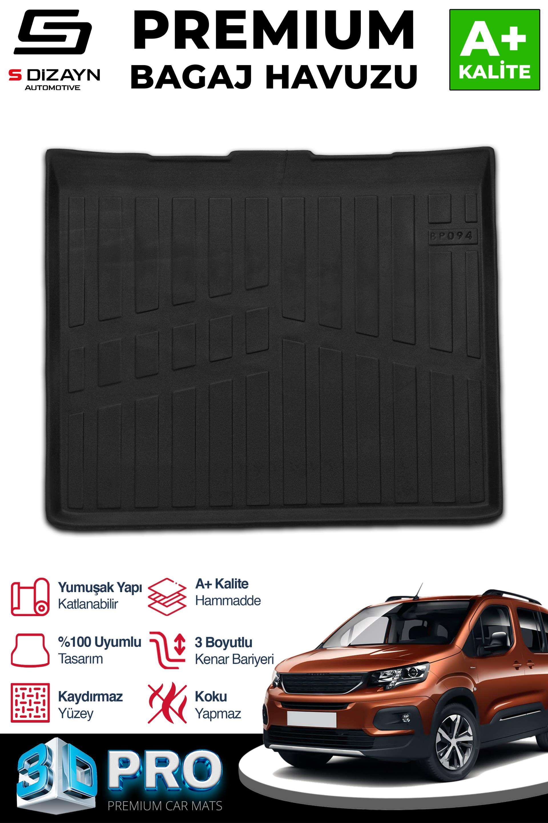 S-Dizayn Peugeot Rifter Seperatörsüz 3D Pro Bagaj Havuzu 2019 Üzeri A+ Kalite