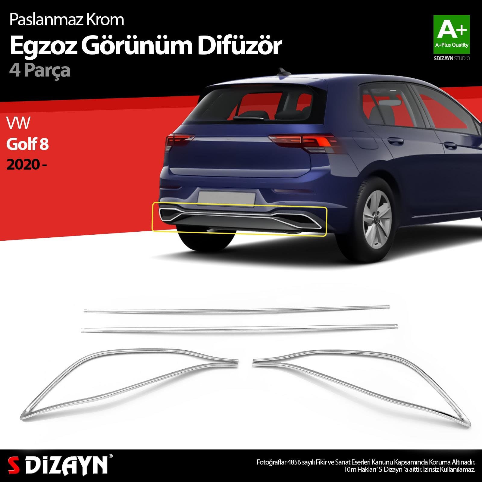S-Dizayn VW Golf 8 Krom Egzoz Görünümü Difüzör 4 Prç. 2020 Üzeri A+ Kalite