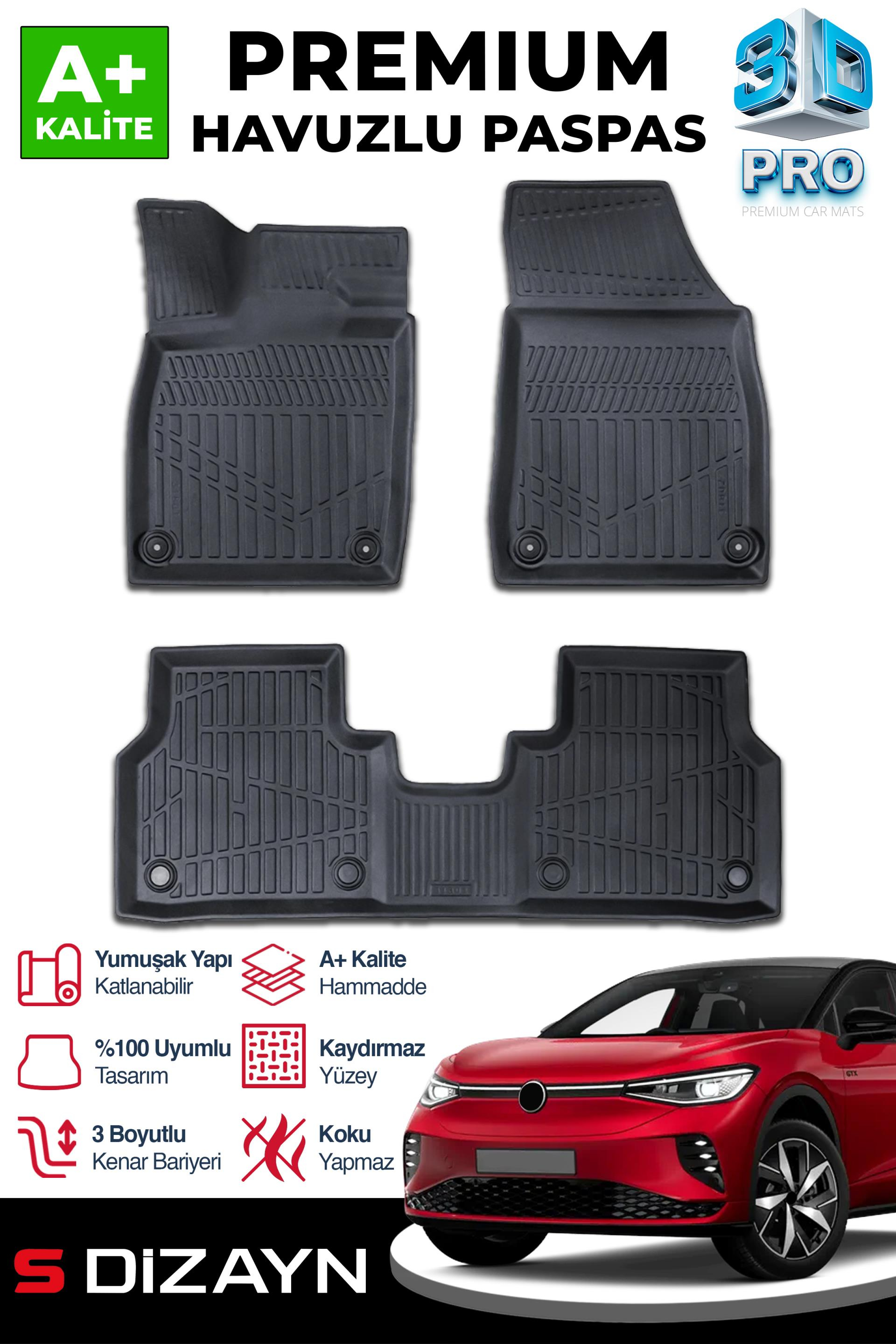 S-Dizayn VW ID5 3D Pro Havuzlu Paspas 2021 Üzeri A+ Kalite