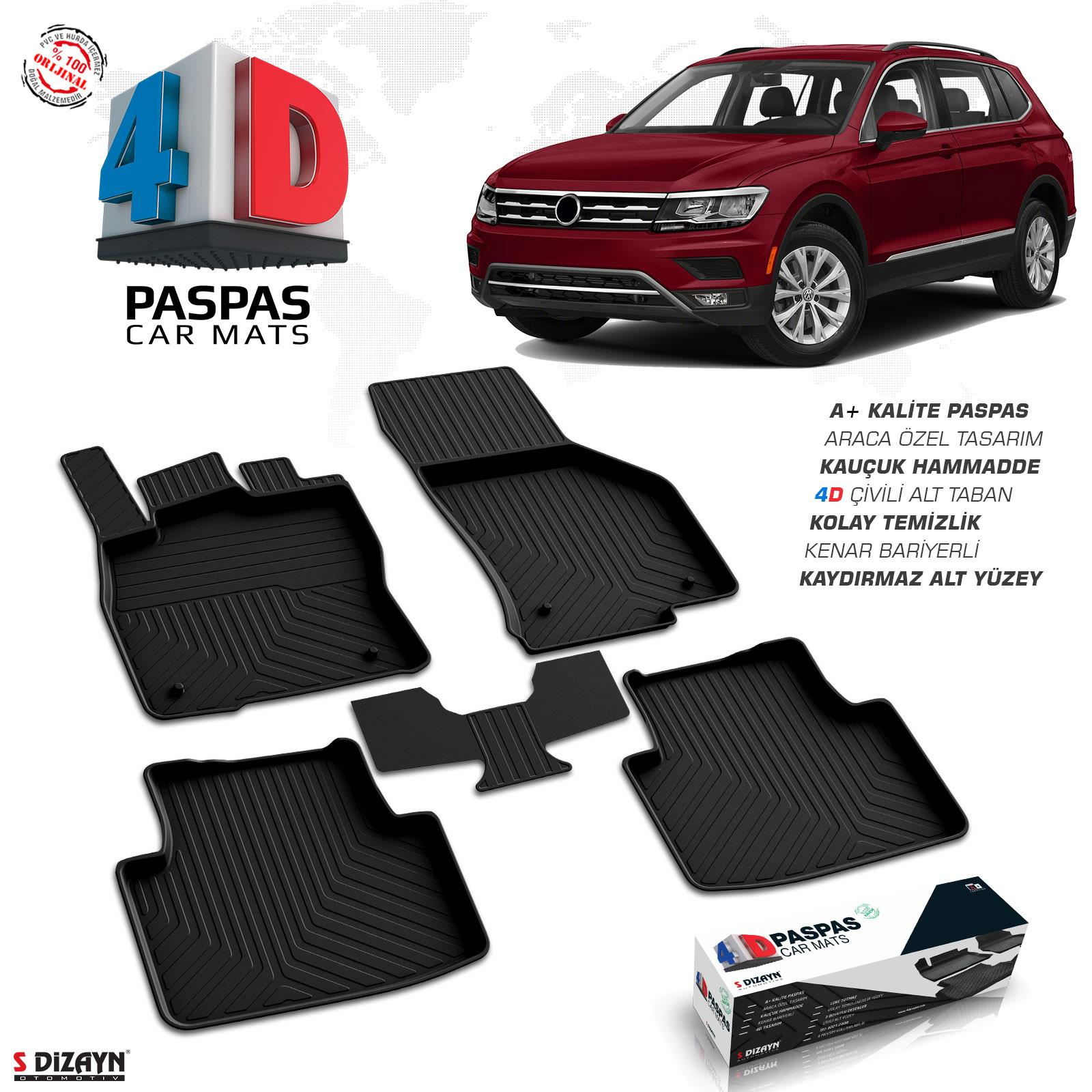 p>Araca Özel 4D Havuzlu PaspasÜrün araca özel olarak en yüksek kalite seviyesinde Avrupa OEM (Original Equipment Manufacturer) kalite standartlarında üretilmiştir.Ekolojik, doğayla dost, geri dönüştürülebilen malzemeden imal edilmiştir.-50°C'den +80°C ısıya kadar yüksek dayanıklılığa sahip gerçek kauçuk ham maddeden imal edilmiştir.Şeklini asla kaybetmez.Havuz kenarlarında bozulma yapmaz.Kaymaz çivili özel 4D alt tabana sahiptir.Sabitleme yuvalarına sahiptir (Bazı araçlarda model bazlı farklılık gösterebilir).Aracınıza bire bir özel olarak imal edilmiştir.3-4 cm yüksekliğinde havuzlu yüzeylere sahiptir.Şaftı örten ayrı bir parçası vardır. (Şaft parçası olmayan araçlarda ortada birleşmektedir)Aracınızın taban döşemesinde oluşacak kalıcı lekelere karşı etkin koruma sağlar.Su ile kolayca temizlenir.Araca göre özel sol ayak dayama dili ve pedal altına giren şekliyle sürüş güvenliğini temin eder.Manuel ve otomatik araçlarda farklılık göstermez.Ön/arka set fiyatıdır.Uluslararası kalite standartlarına uygun olarak , yüksek teknoloji ile gerçek kauçuk kullanılarak imal edilmiştir.High Qualltiy Car Mat's ISO 9001:2008 ISO/TS 16949:20093D havuzlu paspas ile 4D havuzlu paspas arasındaki fark nedir ?3D havuzlu paspas PVC ham madde kullanılarak vakum tekniği ile üretilir. Sadece üst tek yüzeye sahiptir. Ortalama ürün ağırlığı 3-4 kg'dir.4D havuzlu paspas kauçuk ham madde kullanılarak pres baskı tekniği ile üretilir. Çivili alt ekstra yüzeye sahiptir. Ortalama ürün ağırlığı 6-8 kg'dir.